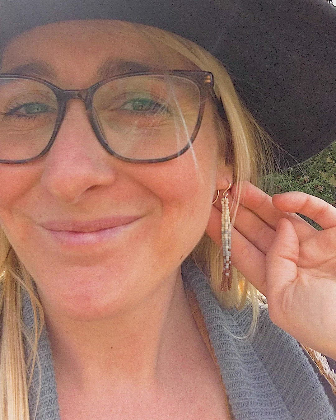 The same beaded fringe earrings you love in a shorter style. Perfect for those days when you are more active, out exploring nature!