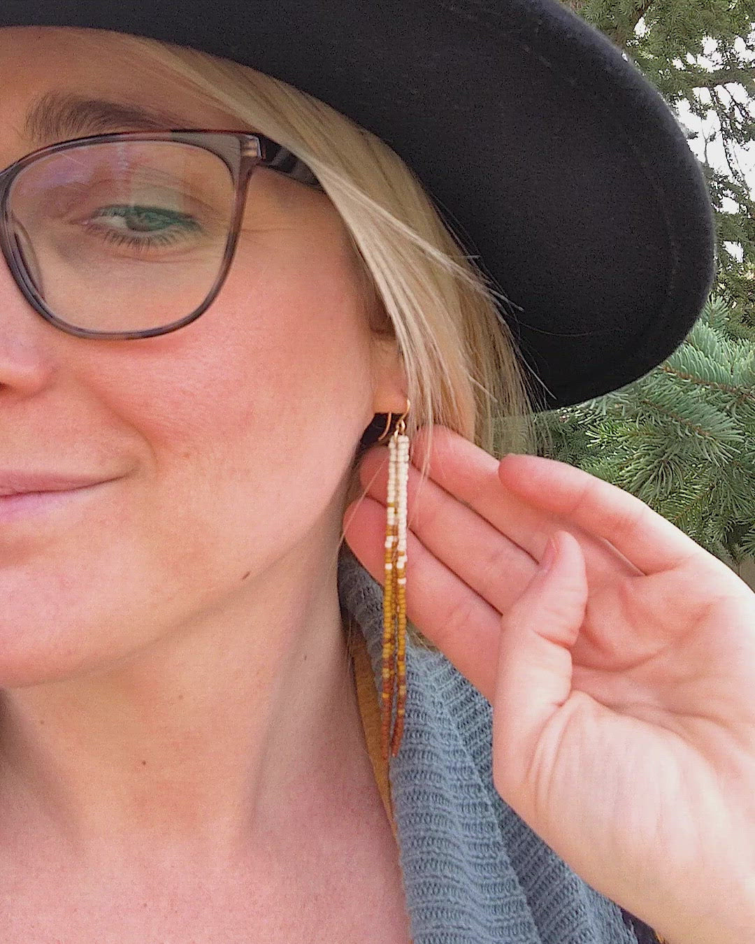 Colors: These beaded earrings feature an ombre fade of matte ivory, mustard yellow and rust glass beads.